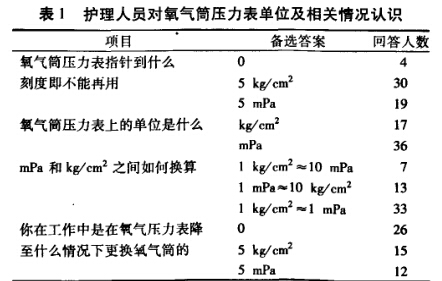 對(duì)氧氣筒壓力表單位認(rèn)識(shí)的調(diào)查分析